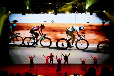 | Images du Tour d'Espagne projetées au cours de la présentation de la Vuelta 2020, à Madrid, le 17 décembre 2019. |