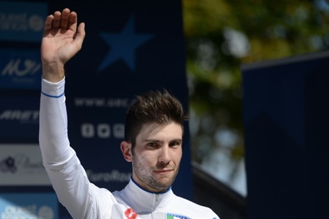 | L'Italien Andrea Vendrame à Plumelec lors des championnats d'Europe sur route le 17 septembre 2016. |