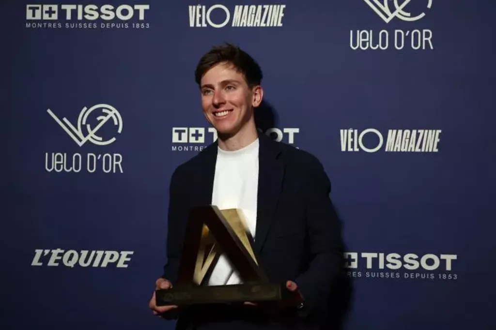 Pogacar, qui succède au Danois Jonas Vingegaard, a reçu le prix des mains de l'Irlandais Stephen Roche, le dernier avant lui à avoir réussi le triplé Giro-Tour-Mondiaux en 1987, au pavillon Gabriel sur les Champs-Élysées.