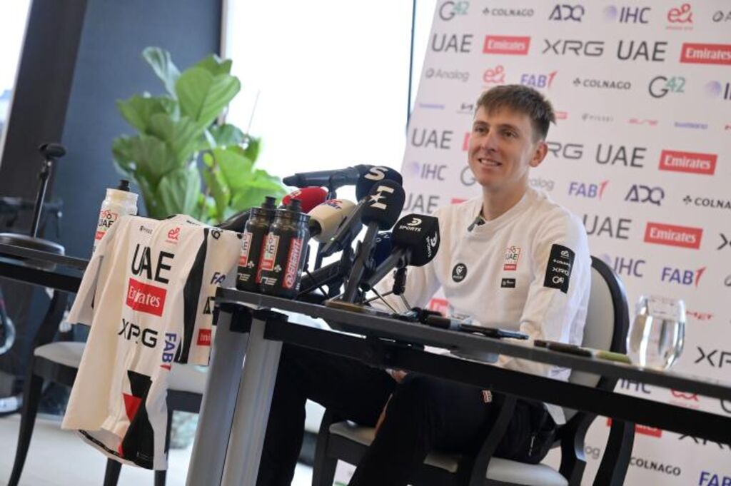 Il a d'abord convié les caméras à le suivre dans la matinée lors d'une sortie d'entraînement avec ses coéquipiers d'UAE, avant de donner une conférence de presse en fin d'après-midi devant plusieurs dizaines de journalistes.