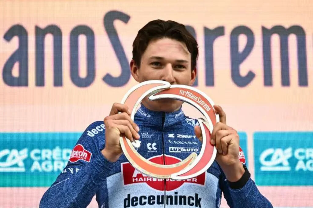 | Jasper Philipsen vainqueur de Milan-Sanremo le 16 mars 2024. |