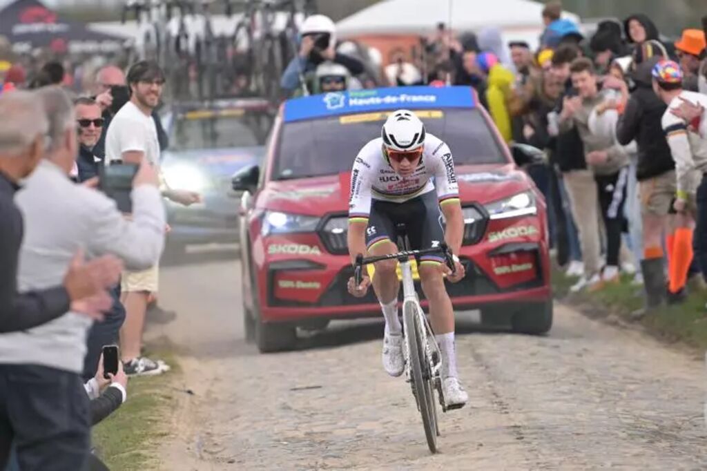 | Le Néerlandais Mathieu Van Der lors de sa victoire dans l'édition 2024 de Paris-Roubaix, le 7 avril. |