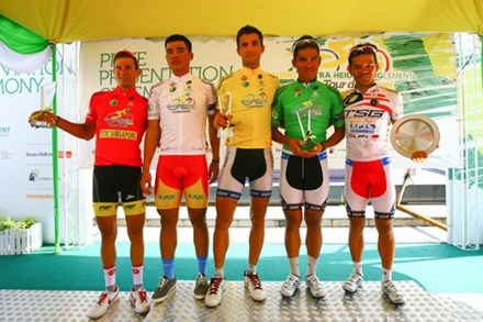 | Trinh Duc Tâm (premier à droite) a obtenu la deuxième place en individuel, outre le maillot blanc. |