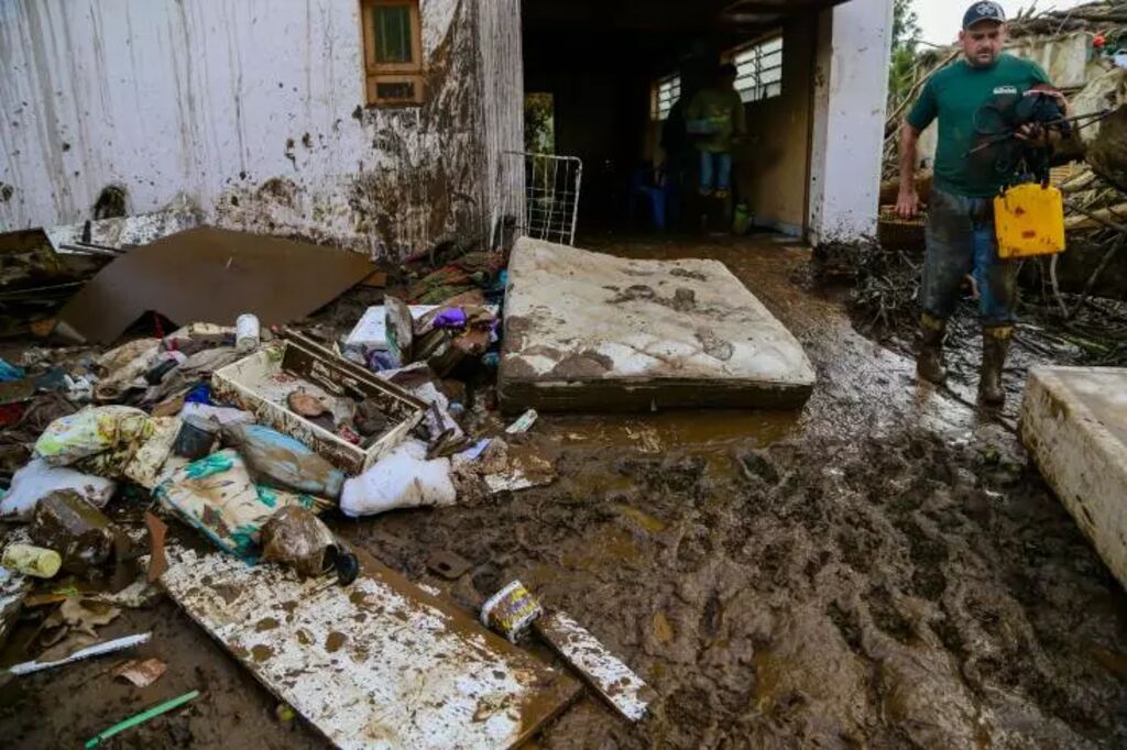 | Un habitant de Muçum parmi les décombres après le cyclone dévastateur, le 6 septembre. |
