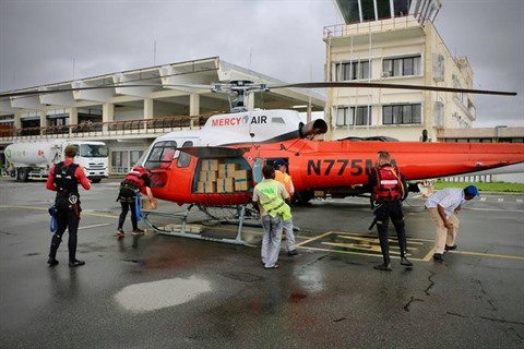| Une équipe de secours sur le tarmac de l'aéroport de Beira, au Mozambique, le 19 mars. |