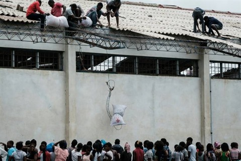 | Des victimes affamées du cyclone Idai pillent du riz, le 20 mars, à Beira au Mozambique. |