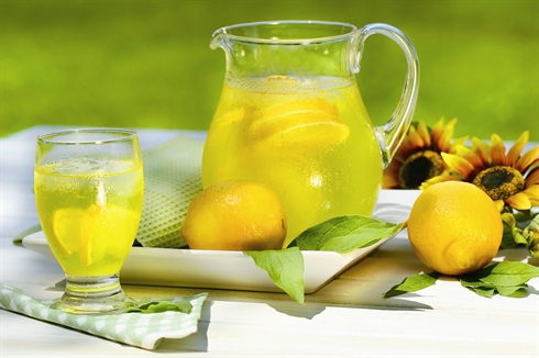 • Ou verser dans un verre la moitié de jus de citron et compléter le reste d’eau. Touiller.