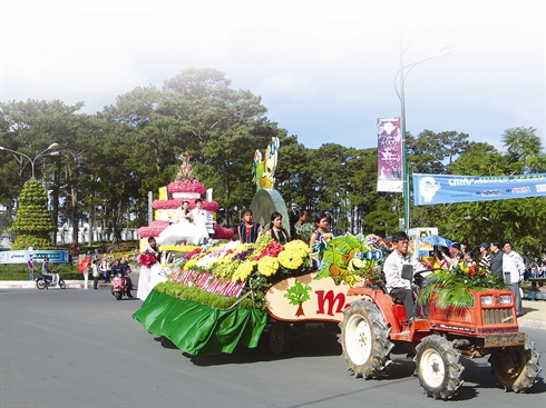 | Défilé de chars fleuris, un classique de chaque édition des Floralies de Dà Lat. |
