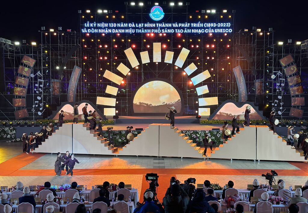 L'événement a été marqué par un spectacle épique raconté à travers la musique, la danse et les performances artistiques, avec les échos résonnants des gongs racontant les 130 ans de développement de Dà Lat.