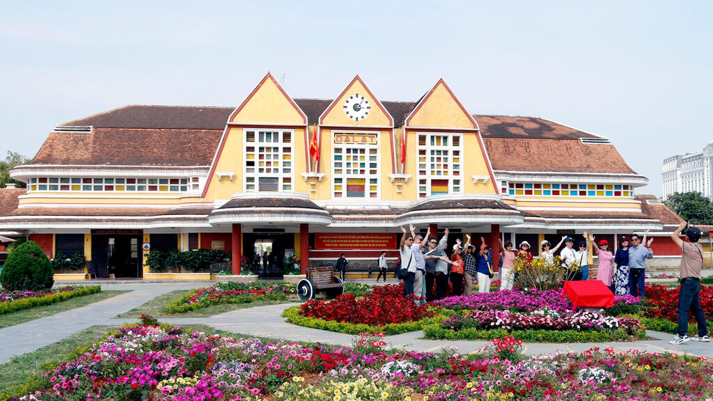 | Les voyageurs visitent et découvrent la gare de Dà Lat. |