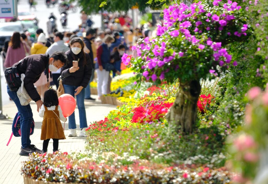 | Des habitants et visiteurs participent au festival floral de la ville de Dà Lat, en décembre. |
