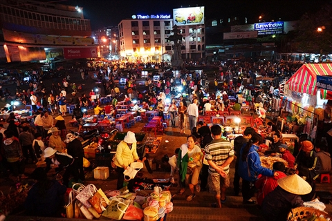 Quand la nuit tombe, la ville de Dà Lat (hauts plateaux du Centre) ressemble à un immense marché de Noël. Dans presque toutes les rues du centre-ville, des marchands proposent des kyrielles de produits : fruits, légumes, fleurs bien entendu, mais aussi des escargots, des vêtements, des tisanes de toutes sortes, des fruits séchés, des souvenirs faits main etc...