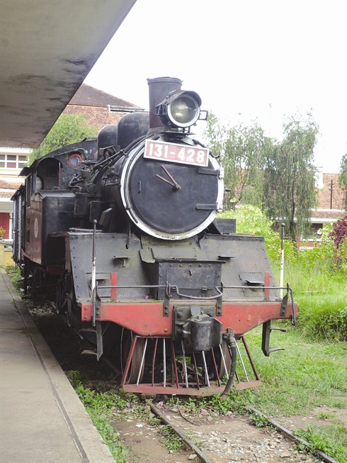 | Vieille loco à vapeur à la gare de Dà Lat. |