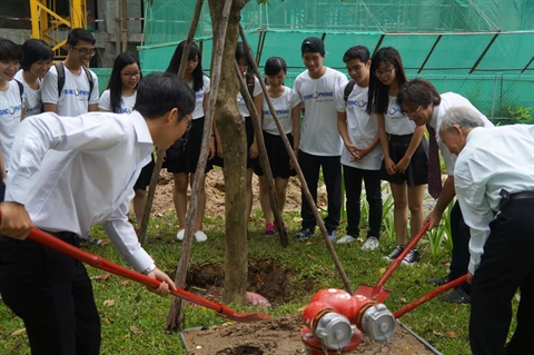| Un arbre a été planté devant la Bibliothèque centrale de Dà Nang, où se sont déroulées toutes les activités. |