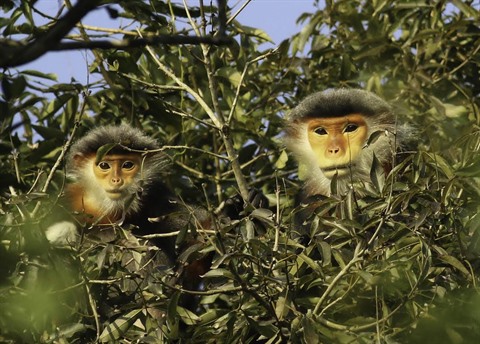 Le Douc (Pygatrix sp.) se décline en trois espèces, reconnaissables par la couleur de leurs pattes (rousses, noires ou grises). Toutes sont présentes au Vietnam. Le Douc à pattes rousses (Pygatrix nemaeus) se trouve dans le Centre du Vietnam, le Nord du Cambodge et le Centre-Est du Laos, son aire de répartition reste donc très limitée. Du fait de ses nombreuses couleurs (un de ses noms en vietnamien est Vooc ngũ sắc, ce qui signifie «singe aux cinq couleurs»), le Douc à pattes rousses est sans conteste l’un des plus beaux primates du monde. Cette espèce est classée dans le Livre Rouge du Vietnam.