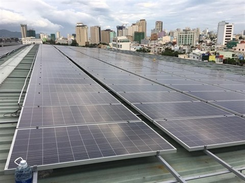 | Un système d'énergie solaire sur le toit d'un bâtiment à Dà Nang (Centre). |