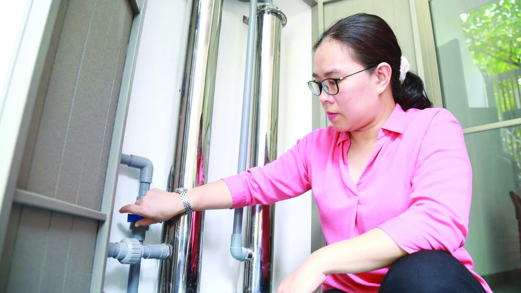 Mme Thùy estime que son invention la plus marquante est un dispositif de filtration d’eau multicouche, développé avec ses collaborateurs étudiants. Inspirée par les problèmes de contamination de l’eau dans sa propre maison, elle a mené une enquête approfondie sur la qualité de l’eau dans plus de 500 foyers à Dà Nang. Et elle a constaté que la plupart des fonds de réservoirs d’eau domestiques étaient couverts d’une couche de sédiments.