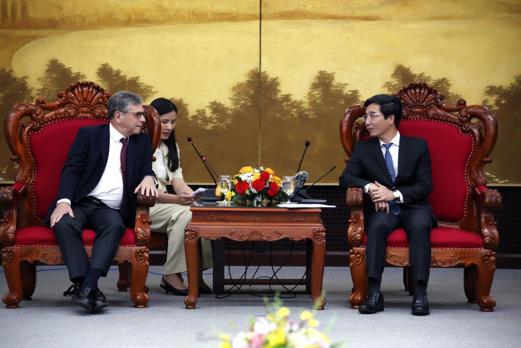 | Le vice-président du Comité populaire de Dà Nang, Trân Chi Cuong (droite), reçoit l'ambassadeur du Brésil au Vietnam, Marco Farani. |