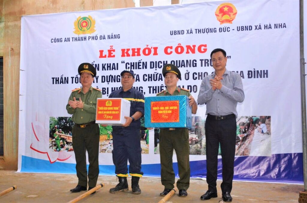 Chargée par le ministère de la Police, le Comité municipal du Parti de Dà Nang et le Comité populaire municipal, la Police municipale a mis en œuvre la "Campagne Quang Trung" avec un effectif important et des objectifs urgents : construire et réparer 271 maisons dans 22 communes et quartiers. Parmi ces maisons, 213 gravement endommagées doivent être réparées avant le 31 décembre 2025, et 58 autres entièrement détruites doivent être reconstruites avant le 31 janvier 2026.