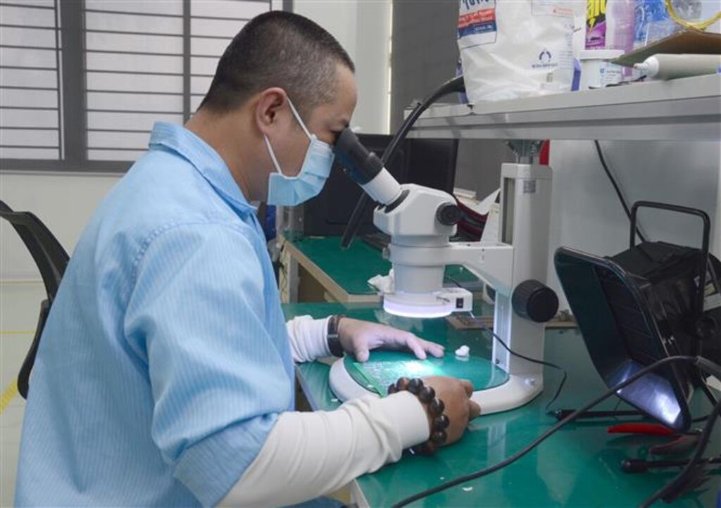 | Un ouvrier travaillant dans le parc high-tech de Dà Nang (Centre). |