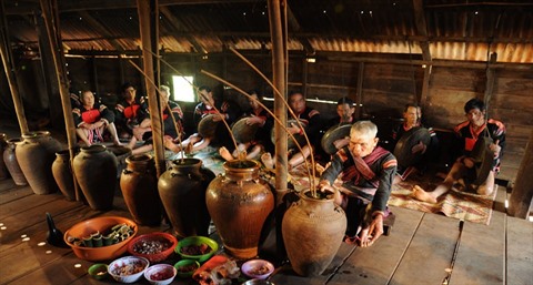 | Dans un village de l'ethnie Ê-dê à Dak Lak (hauts plateaux du Centre). |