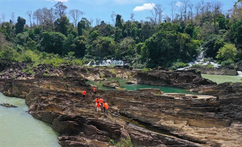 | Des voyageurs découvrent un site touristique à Dak Lak. |
