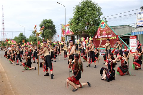 | Représentation artistique lors du carnaval "La route de la brocatelle", le 15 janvier dans le chef-lieu de Gia Nghia, province de Dak Nông. |