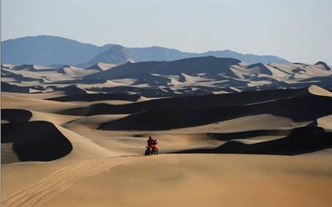 | Le Britannique Sam Sunderland lors de la 11e étape du rallye Dakar autour de Bisha, en Arabie saoudite, le 13 janvier. |