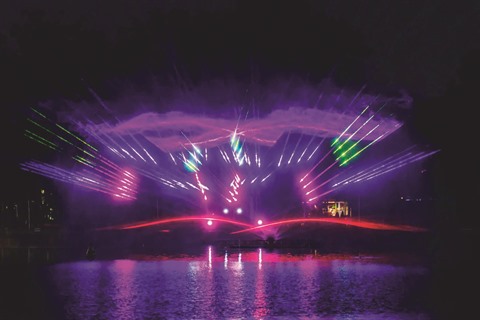 Une fois l’équipement mis en place, il s’agit de pomper l’eau du parc pour ensuite la projeter à une hauteur de 20 m à 40 m et façonner ainsi un écran sous forme de cubes carrés en trois dimensions. Les films seront ensuite projetés sur l’écran d’eau, accompagnés d’un système sonore à quatre directions fabriqué par la République tchèque.
