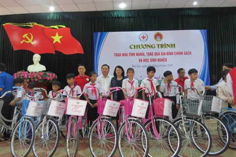 La vice-présidente Dang Thi Ngoc Thinh a accordé la plaque symbolique de huit maisons, d'une valeur de 560 millions de dongs chacune (24 300 USD), à des ménages pauvres du district de Dai Loc, 50 cadeaux à des familles dans le besoin, d'une valeur de 2 millions de dongs chacun, 20 vélos pour des étudiants pauvres avec des performances d’études exceptionnelles, et 60 cadeaux à des enfants, chacun de 300 000 dongs.