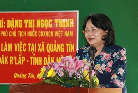 | La vice-présidente Dang Thi Ngoc Thinh, le 17 juillet dans la commune de Quang Tin, district de Dak R'Lap. |