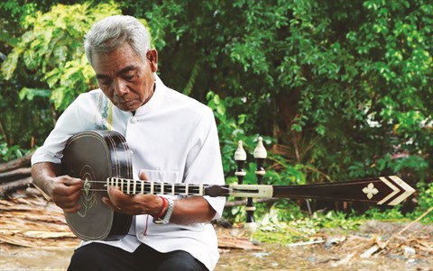 Danh Sà Râm est l’un des rares artistes de Châm riêng Chà pây dans la province de Bac Liêu. Dans la langue de son ethnie, Châm riêng veut dire chant, tandis que Chà pây (ou Chà pây đon vênh) est le nom d’une sorte de luth à deux cordes en forme de feuille de styrax.