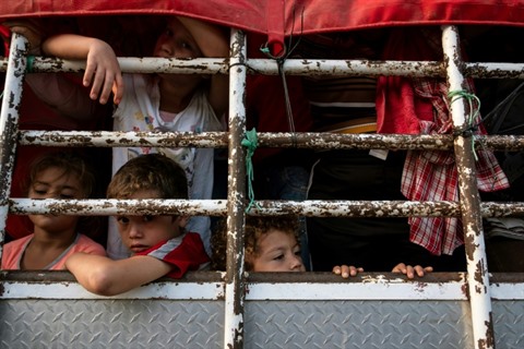 | Des enfants de la caravane de migrants honduriens dans un camion près de Pijijiapan, dans le sud du Mexique, le 26 octobre. |