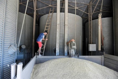 | L'agriculteur Sébastien Méry dans le hangard qui abrite son silo à grain, à Chevannes le 7 août. |