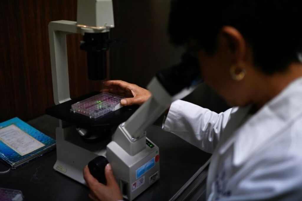 | La chercheuse Rosa Elena Sarmiento, du laboratoire de virologie de la faculté vétérinaire de l'UNAM, le 27 mars à Mexico. |