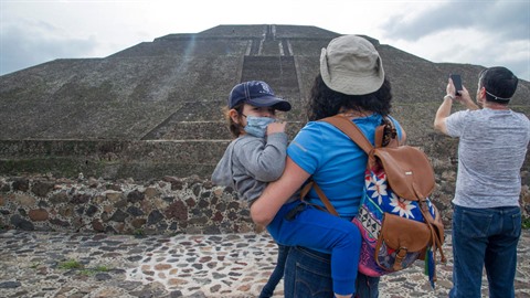 | Des touristes sur le site archéologique de Teotihuacan, à 50 km de Mexico. |