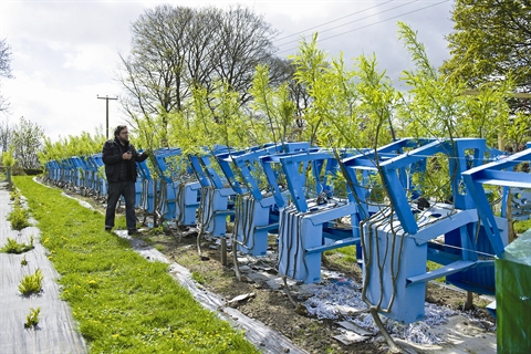 Quelques centaines de meubles - des chaises, des abat-jour mais aussi de petites tables ou des cadres de miroir - sont ainsi «cultivés» par Gavin Munro, l’homme à la tête de cette curieuse plantation mêlant art, design et arboriculture. Sa société, Full Grown, a déjà présenté quelques prototypes de ces meubles qui, une fois ôtées les formes en plastique bleu, sont faits d’une seule et unique pièce de bois.