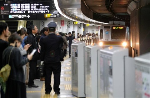 | Des usagers du métro à la station Shibuya, le 1er mars. |