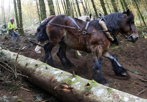 "L'objectif des travaux aujourd'hui, c'est d'éliminer les résineux plantés dans les années 1960", indique à l'AFP Christine Dodelin, chargée de mission à Natura 2000, un réseau européen de sites naturels à grande valeur patrimoniale dont font partie les gorges de la Canche. Coordonné par l’Office National des Forêts (ONF), le chantier emploie une poignée de solides chevaux de trait qui tirent d'imposants sapins avec un câble. Selon leurs propriétaires, la charge tractée quotidiennement atteint en moyenne "quatre à cinq cents kilos", parfois sur des pentes inclinées à plus de 50%.