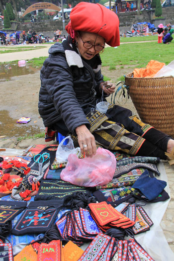 | Vente d’articles de broderie à Sa Pa. Photo : Linh Thao/CVN |