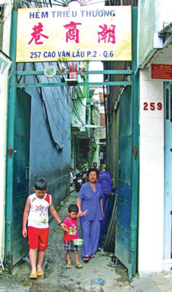 | La ruelle Triêu Thuong au 257, rue Cao Van Lâu dans le 6e arrondissement, abrite 15 familles, originaires de Chaozhou. |
