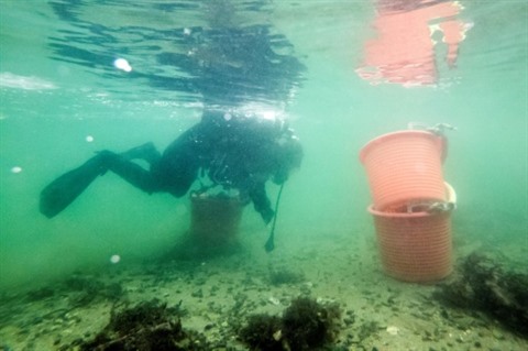 La plongeuse Lotta Klemming collecte des huîtres sauvages, le 31 janvier à Grebbestad, en Suède. Photo : AFP/VNA/CVN |