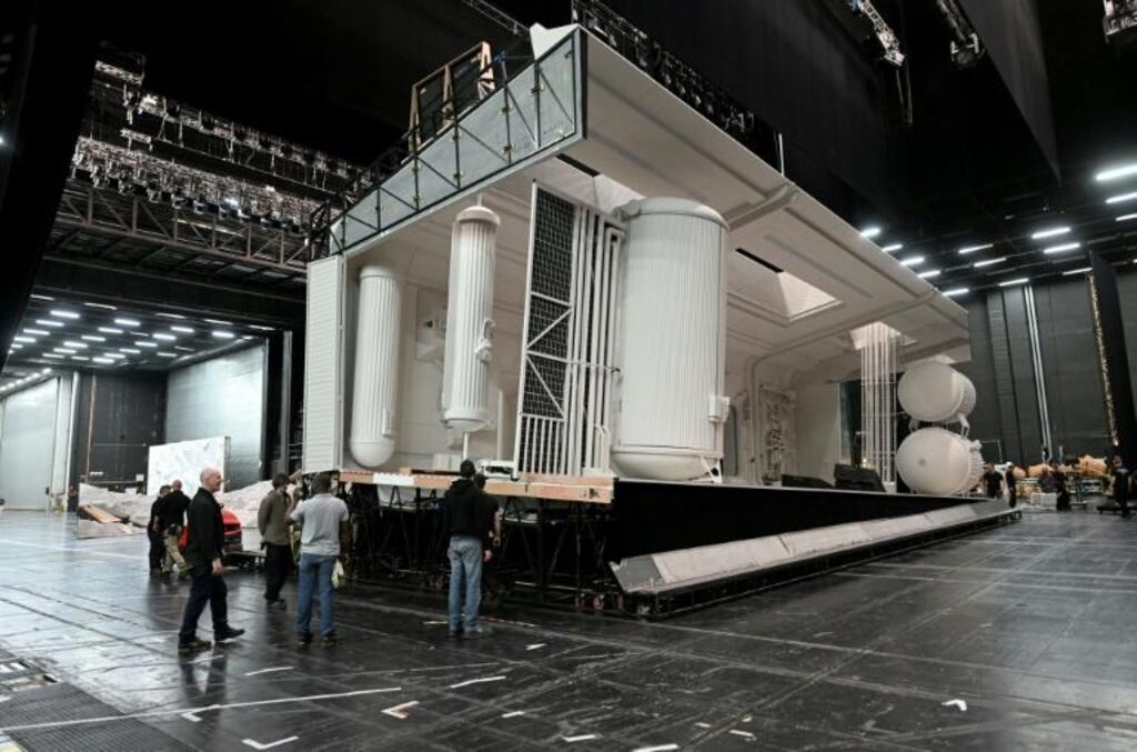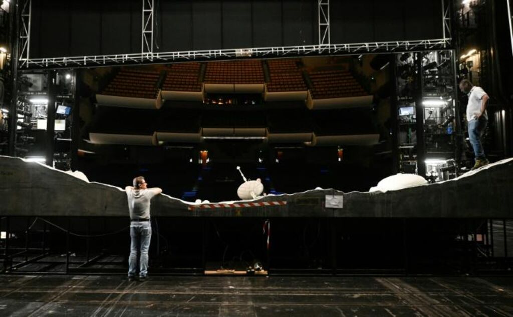 Quelques jours avant la reprise de La Bohème de Puccini (2 mai-4 juin), ses équipes s’attellent à la mise en place des décors. Cette version de Claus Guth avait en 2017 hérissé une partie de la critique et du public en situant l'histoire... dans l'espace. Une station spatiale de près de 12 tonnes est poussée au milieu de la scène par des machinistes juchés sur des tracteurs électriques.