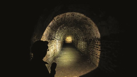 | Une des galeries de l’étrange réseau souterrain très profond en forme de squelette de poisson découvert à Lyon. |