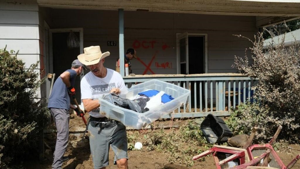 À Swannanoa, l'aide "a été super", salue sans hésiter Shelby Holzhauser. À 20 mètres de sa maison, de nouvelles canalisations d'eau sont en train d'être installées, tandis qu'un tractopelle répare une route défoncée.