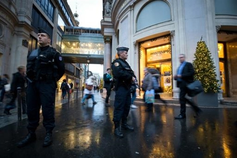 | Des gendarmes assurent la sécurité devant un grand magasin à Paris, le 19 novembre. |