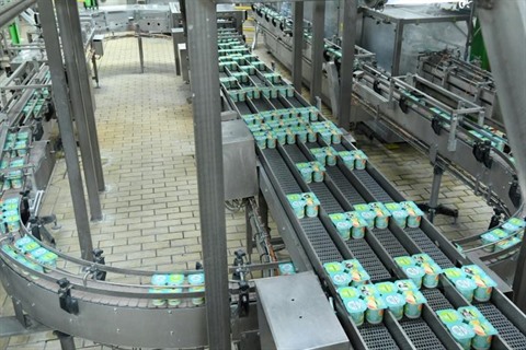 | Une ligne de production de l'usine de yaourts Eurial, le 6 septembre à Jouy, dans l'Yonne. |