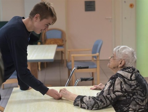 | Une patiente atteinte de la maladie d'Alzheimer et un adolescent le 18 octobre à Saint-Quirin, dans l'Est. |