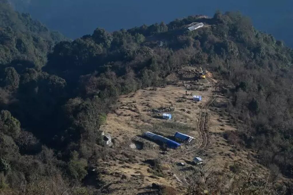 | Le site de construction d'un téléphérique menant au temple Pathibhara Devi, dans le district de Taplejung, dans l'Est du Népal, le 21 janvier. |