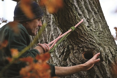 "Extraordinaire, la reine pond !", s’enthousiasme Felipe Salbany. Suspendu à mi-hauteur d’un chêne multicentenaire dans le Centre de l’Angleterre, il observe des abeilles sauvages rares par un petit trou dans le robuste tronc.
